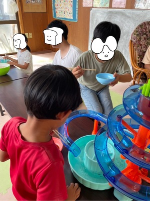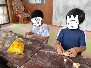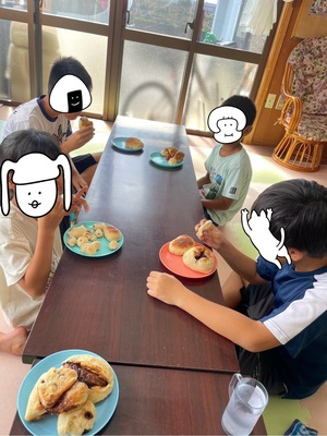 ↑パン作りしたり、雨だったので冷やしソーメンは室内